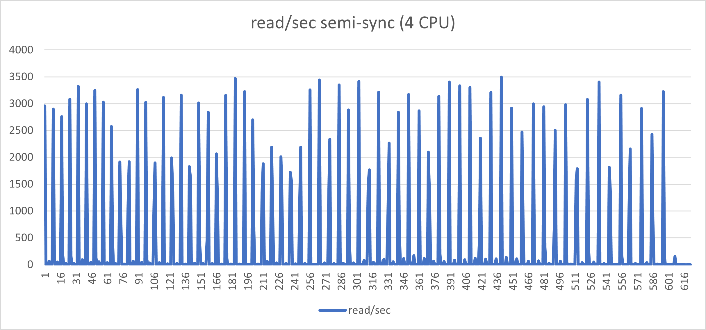 In the next graphs I will show you the behavior of writes/reads using Asynchronous replication and the same load with Semi-synchronous.